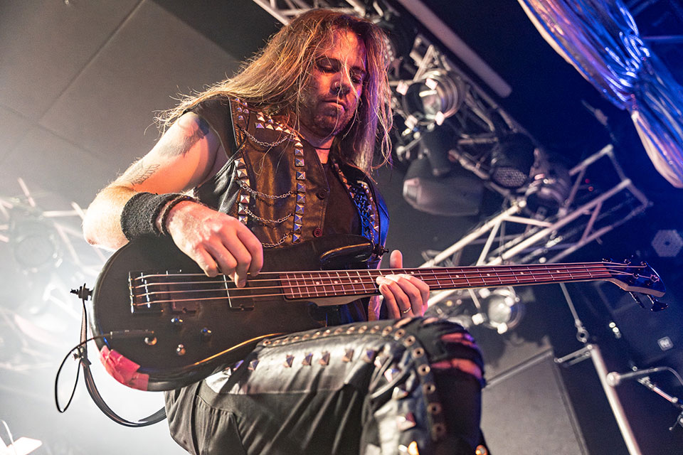 「Presence Of Mind」終わりでメンバーが一旦退場すると、すぐさまアンコールが掛かり、そう待たせずにミステリアスなムードのSEが流れ、ヘヴィな「The Human Paradox」がスタート! '16年作『TITANIC MASS』からのこの曲は、今回のセット中で最も古いレパートリーで、前回来日時にもプレイされた唯一の曲だった。そう、もはやデビュー作『BRING THE THUNDER』('09)、続く『KNOCK YOU DOWN』('11)、『SULTANS OF SIN』('12)、『RENATUS』('14)の4枚からは全く演奏されることなく、言わば前回以降の彼等、現在進行形のDYNAZTYを見せるライヴだったということ。それが証拠に、最後から2曲目──「Devilry Of Ecstasy」は最新作からの選曲。それをアンコールにもってくることで、いかに彼等が同アルバムに自信を持っているかも強く伝わってきた。