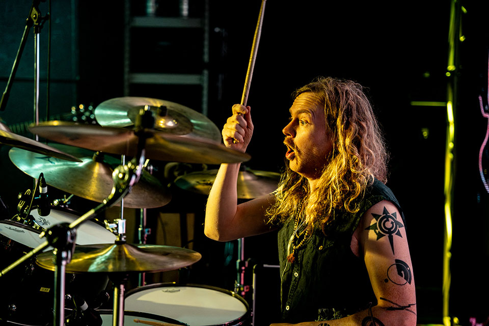 一方、ゲオルグがドラム・キットを離れ、キーボードを弾いたアコ・タイムは、『FIRESIGN』の「My Darkest Hour」で始まり、『FINAL ADVENT』の「Power Of Will」へ、これまたメドレー形式でつなげ、やはり『FINAL ADVENT』から「Yours」が始まった…と思ったら、同曲はそのままエレクトリックに引き継がれ、実にドラマティックな展開で魅せてくれた。