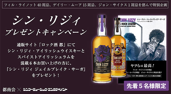 通販サイト「ロック酒 都」にてリジィ関連のお酒を混載6本お買い上げの方に、書籍『シン・リジィ ジェイルブレイク・サーガ』をプレゼント