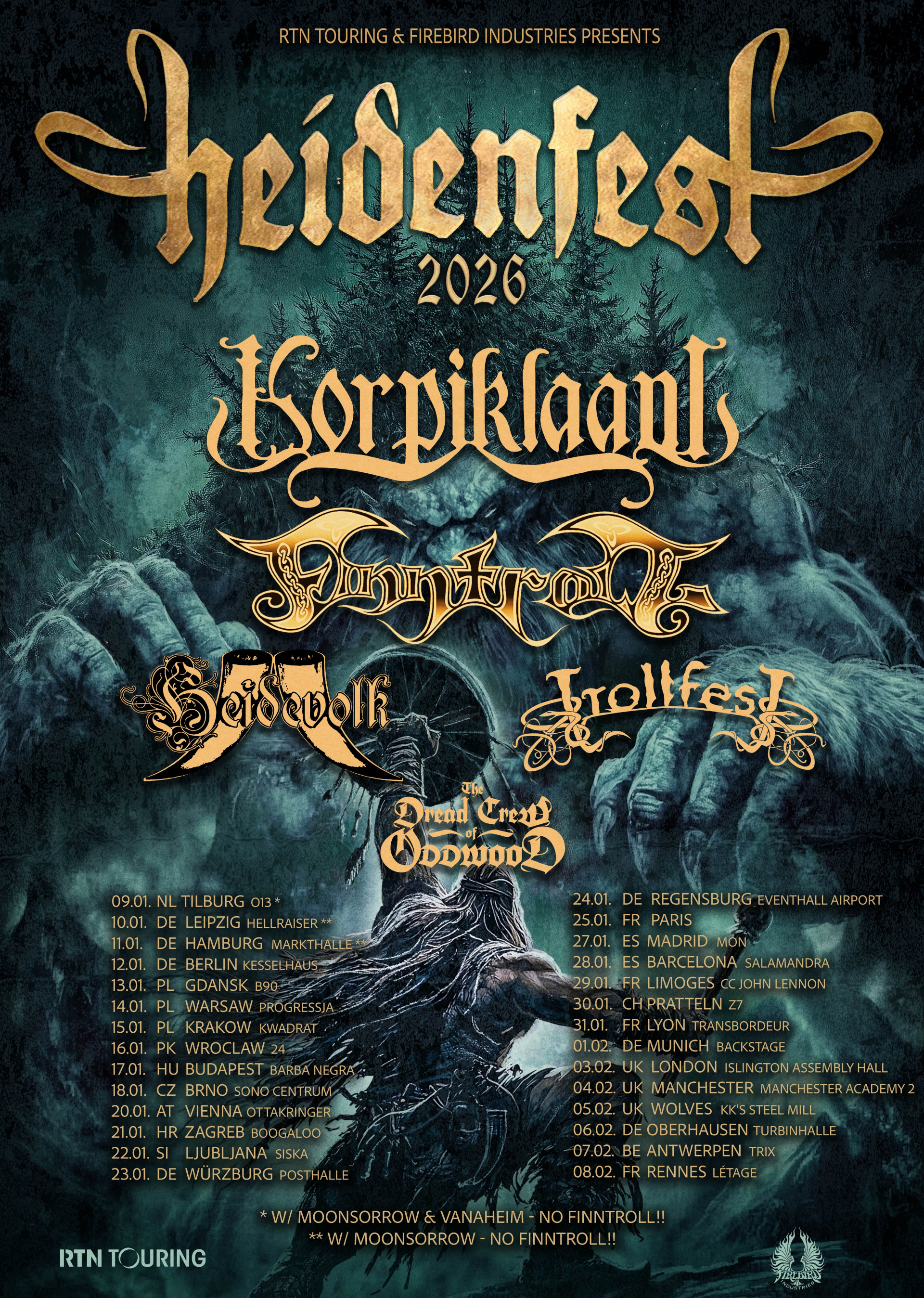 2008年に始まり、2010年代前半には欧州全域のペイガン/フォーク・メタル隆盛に大きく貢献した“Heidenfest”。かつて飲んだくれのお祭り騒ぎ集団というキャラで場を盛り上げるフォーク・メタル界の暴れん坊も、いまでは欧州ペイガン/フォークメタル界の盟主の貫禄を備えるに至っている。