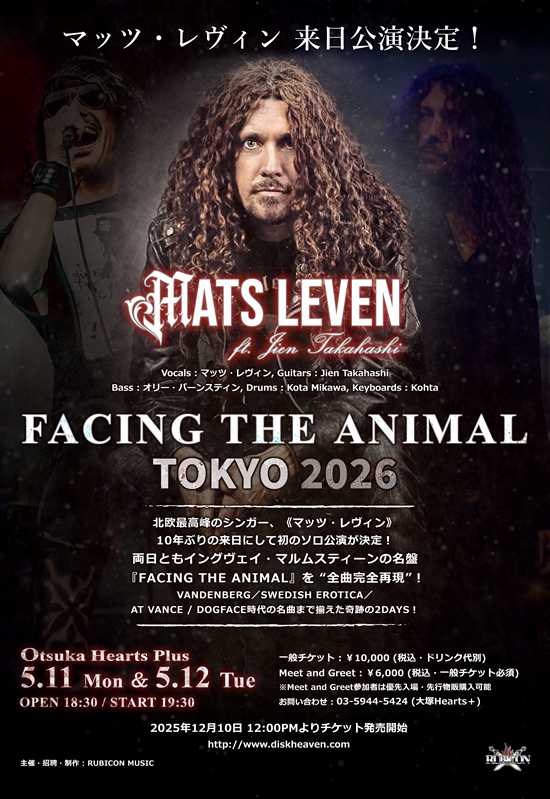 スウェーデンの熱唱シンガー:マッツ・レヴィン来日決定! イングヴェイ・マルムスティーン「FACING THE ANIMAL」全曲完全再現ライヴを敢行!!