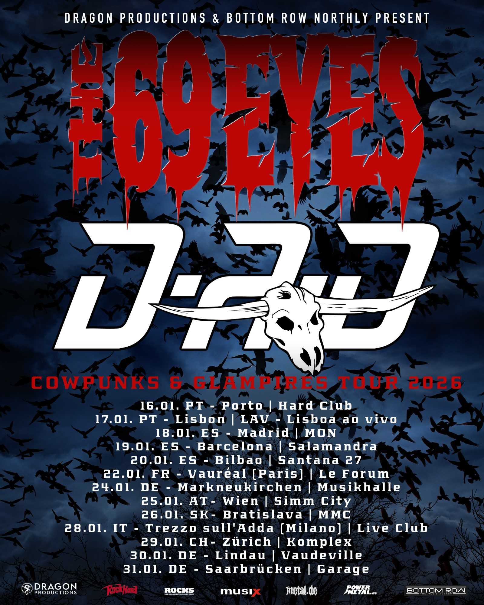 現在THE 69 EYESはデンマークの豪快ハード・ロッカーD-A-Dと組んで“Cowpanks & Glampires Tour 2026”で欧州各地を絶賛巡業中。