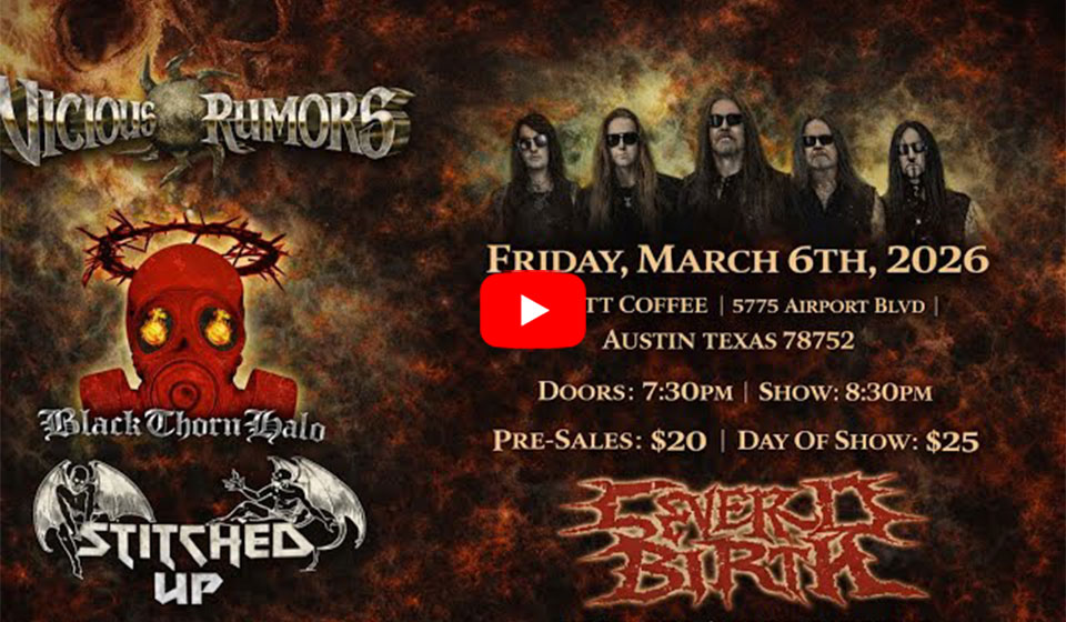 USパワー・メタルの権化VICIOUS RUMORSは昨年夏に最新作「THE DEVIL’S ASYLUM」を発表、去る2月末から3月いっぱいの間にアメリカをくまなく廻るツアーを敢行し、3月29日のペンシルヴェニア州ハリスバーグで無事完遂。その途中、3月6日にテキサス州ダラスのクラブ “Kickbutt Coffe” で行なったライヴの動画が全編公開されている。